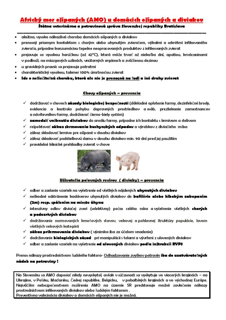 Africký mor ošípaných (AMO) u domácich ošípaných a diviakov - Štátna veterinárna a potravinová správa Slovenskej republiky Bratislava