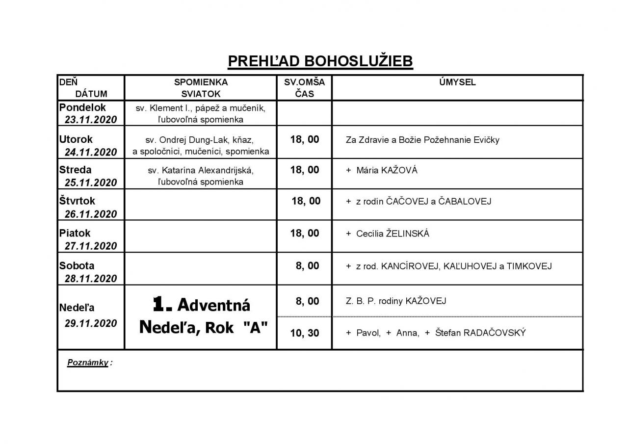 Prehľad Bohoslužieb v 48. týždni (23.11.2020 - 29.11.2020)