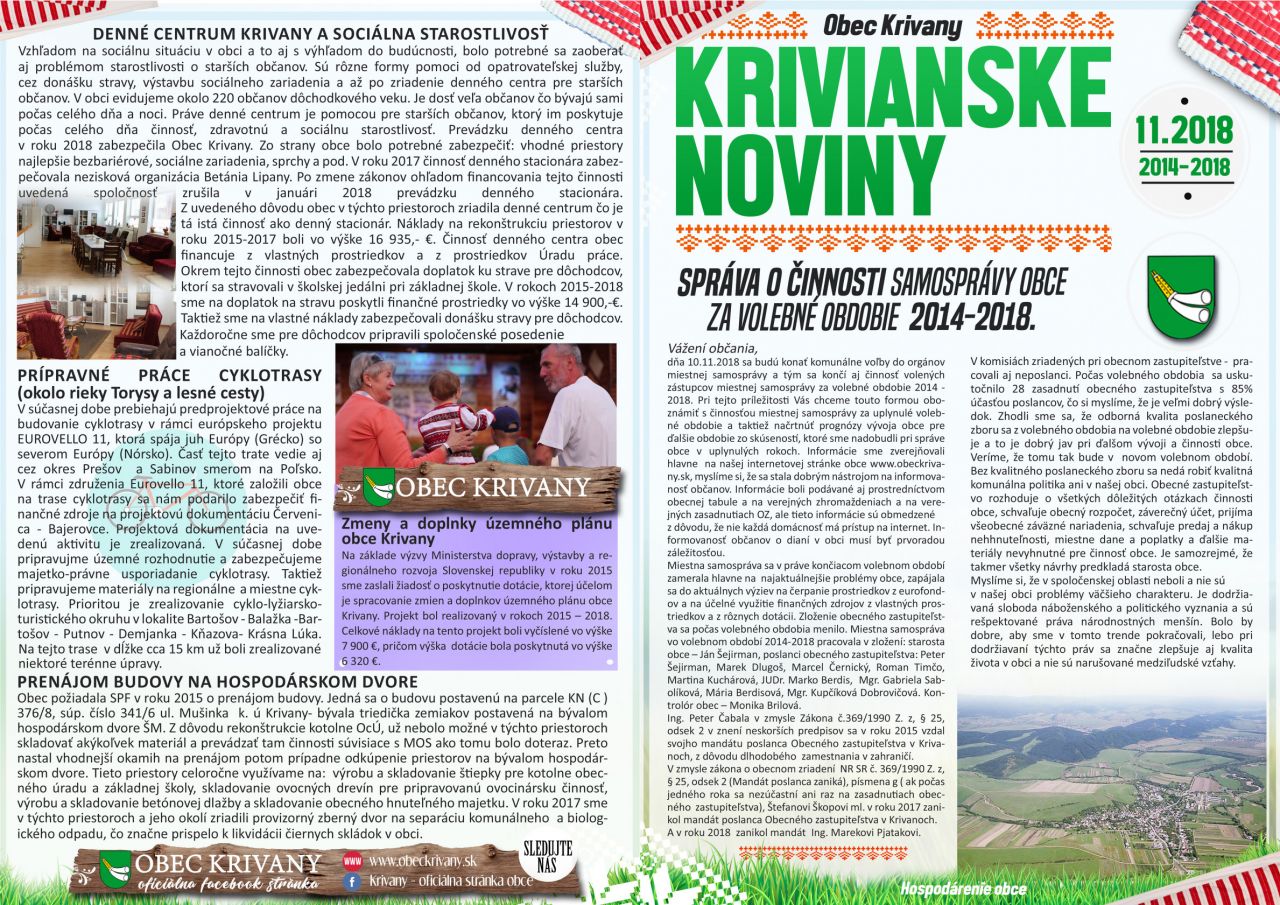 Krivianske noviny - čiastočná správa o stave obce za volebné obdobie 2014-2018
