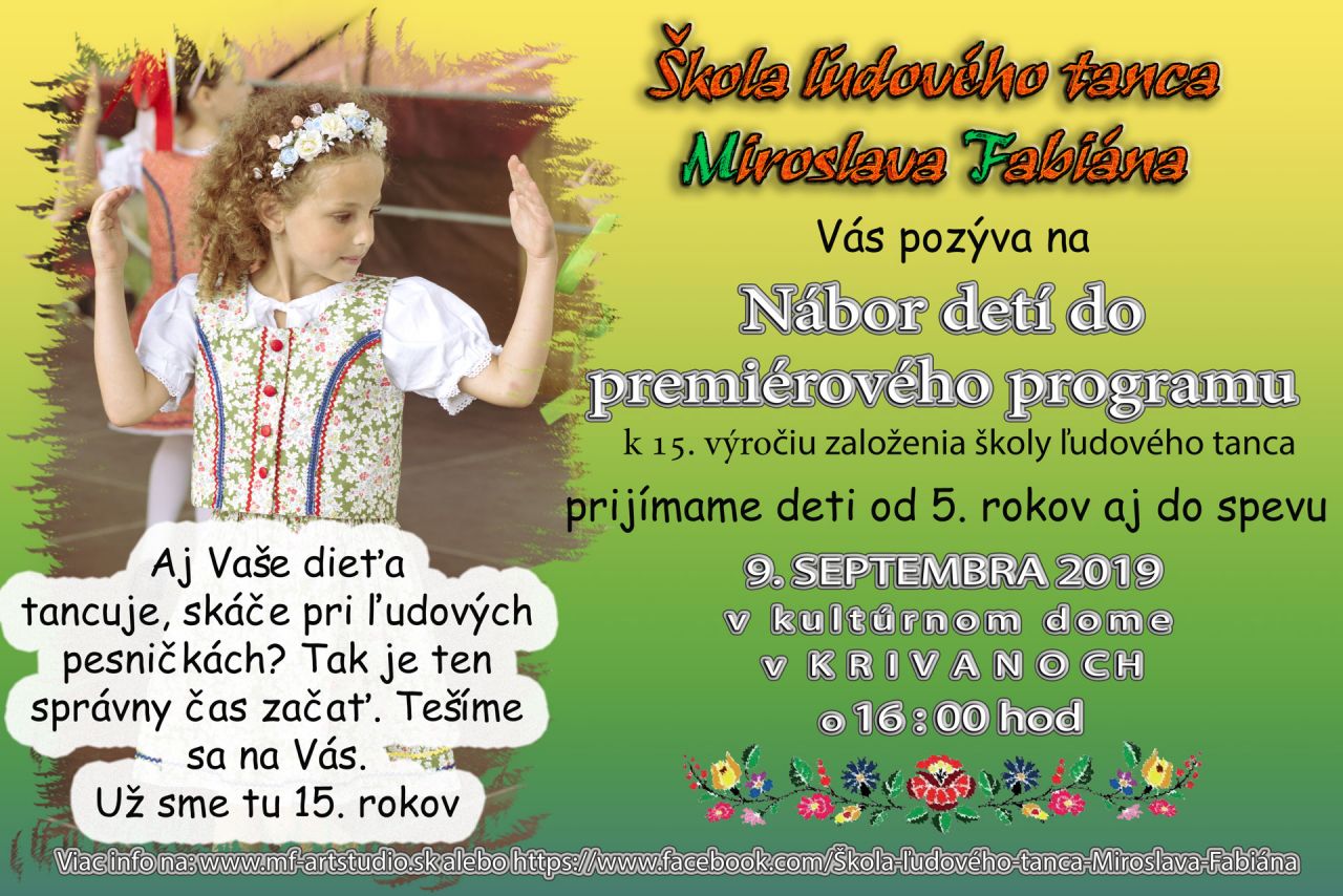 Škola ľudového tanca Miroslava Fabiána Vás pozýva na nábor detí do premiérového programu.