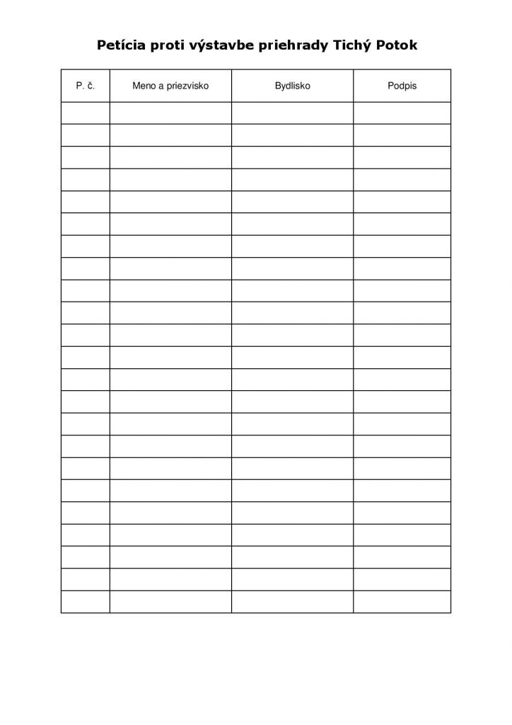 Petíciu proti výstavbe vodnej nádrži v Tichom Potoku môžu občania prísť podpísať na Obecný úrad, do predajní: COOP Jednota a FRESH potraviny.