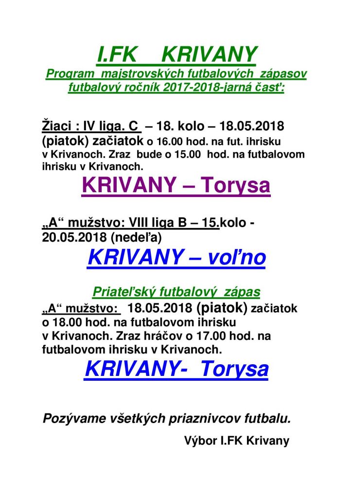 Na víkendové zápasy pozývame všetkých priaznivcov futbalu.