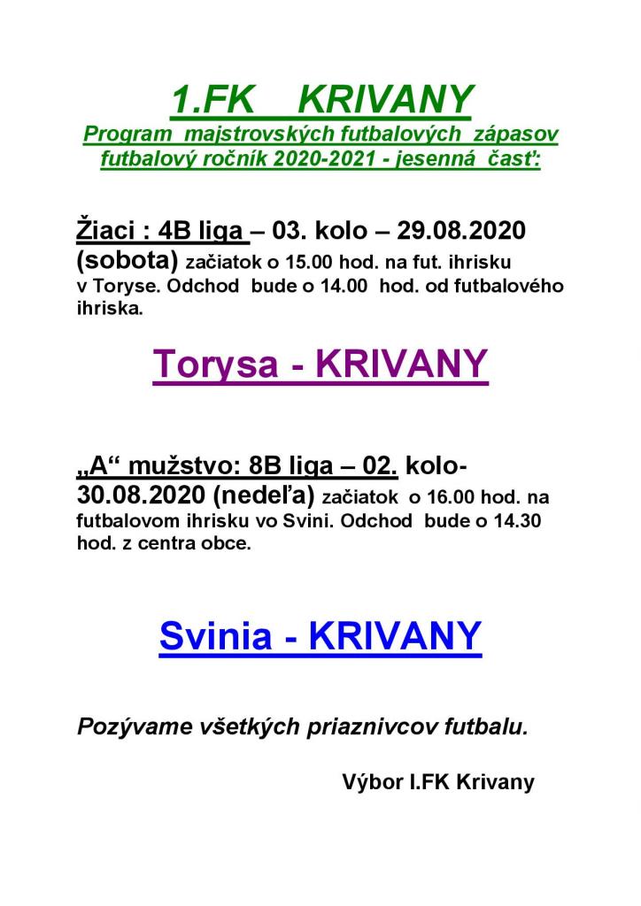 Pozývame všetkých priaznivcov futbalu na majstrovské futbalové zápasy našich družstiev.
