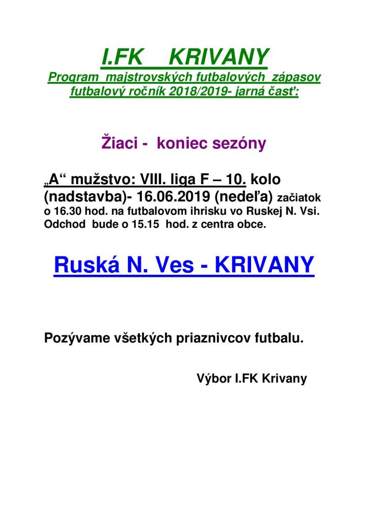 Obec Krivany pozýva všetkých futbalových fanúšikov na víkendový zápas.