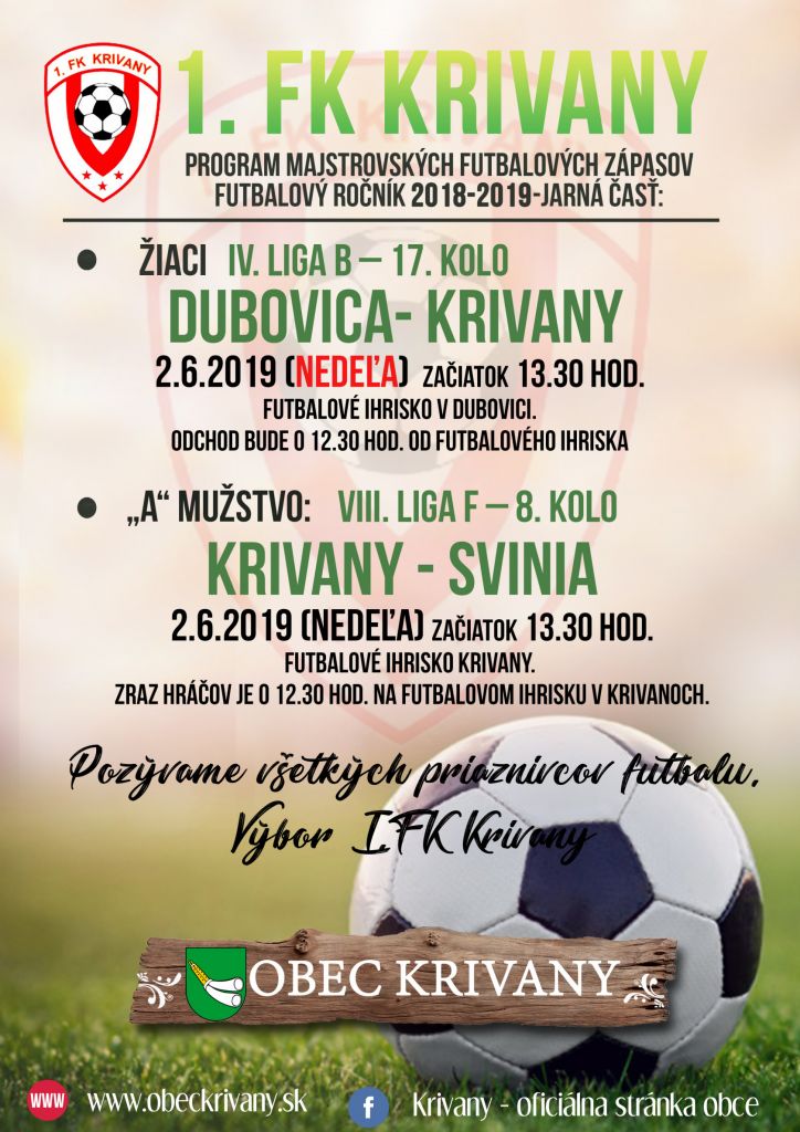 Obec Krivany pozýva všetkých futbalových fanúšikov na víkendové zápasy.