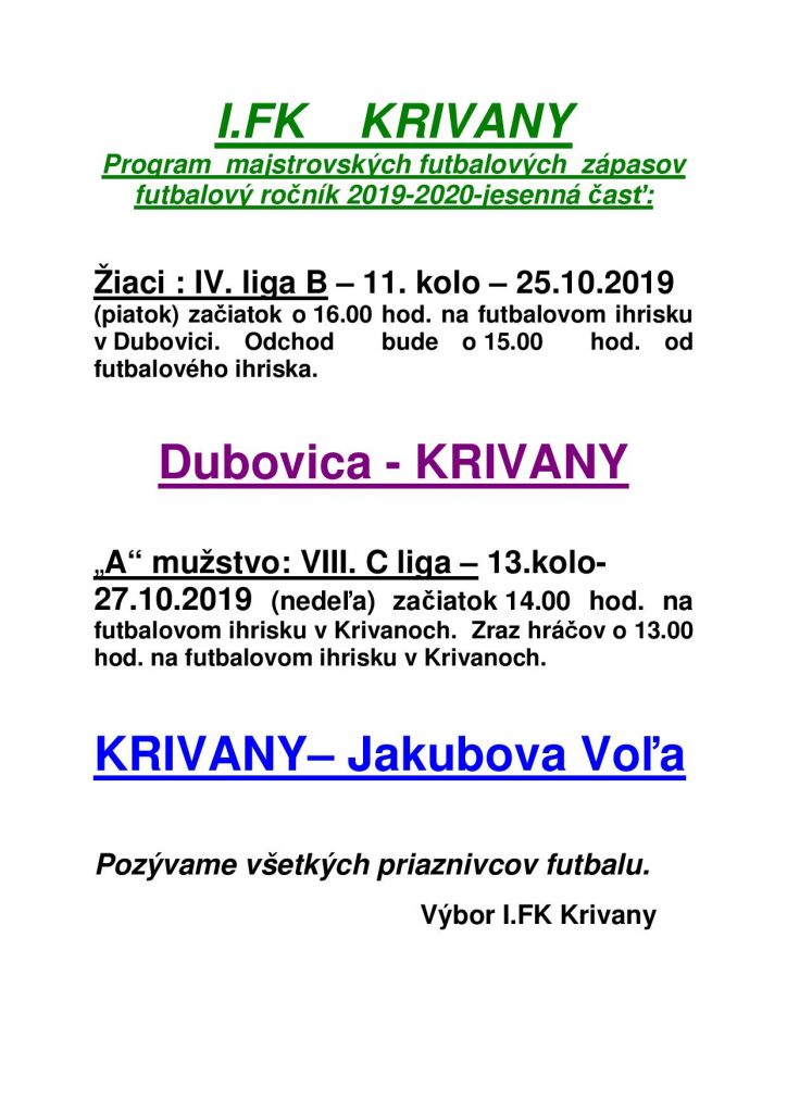 Obec Krivany pozýva všetkých futbalových fanúšikov na víkendové zápasy.