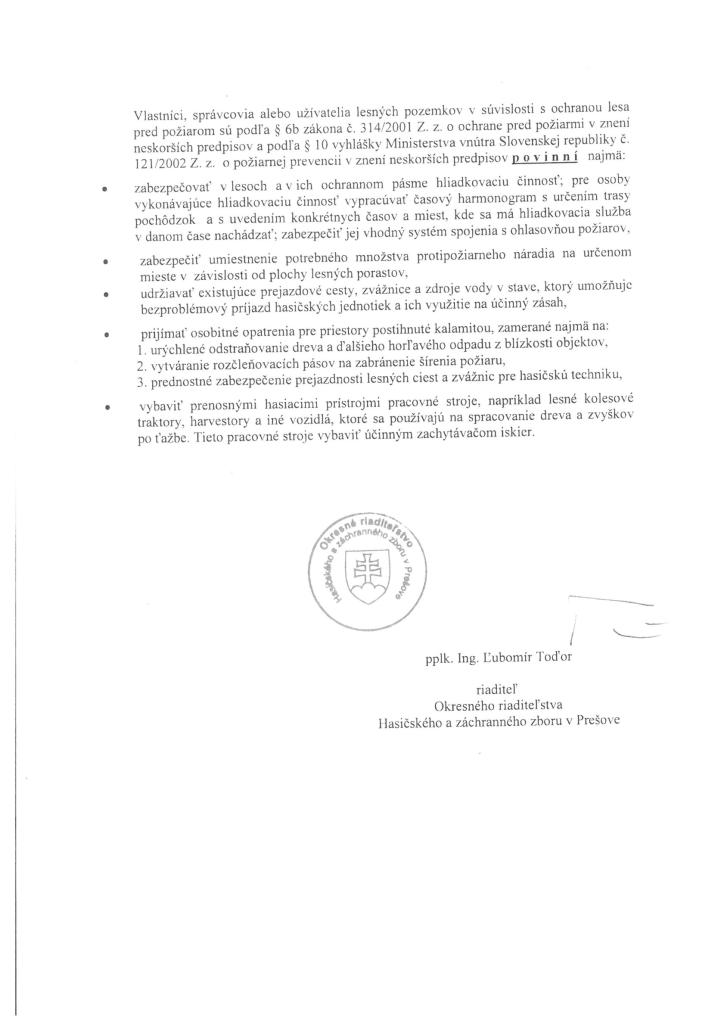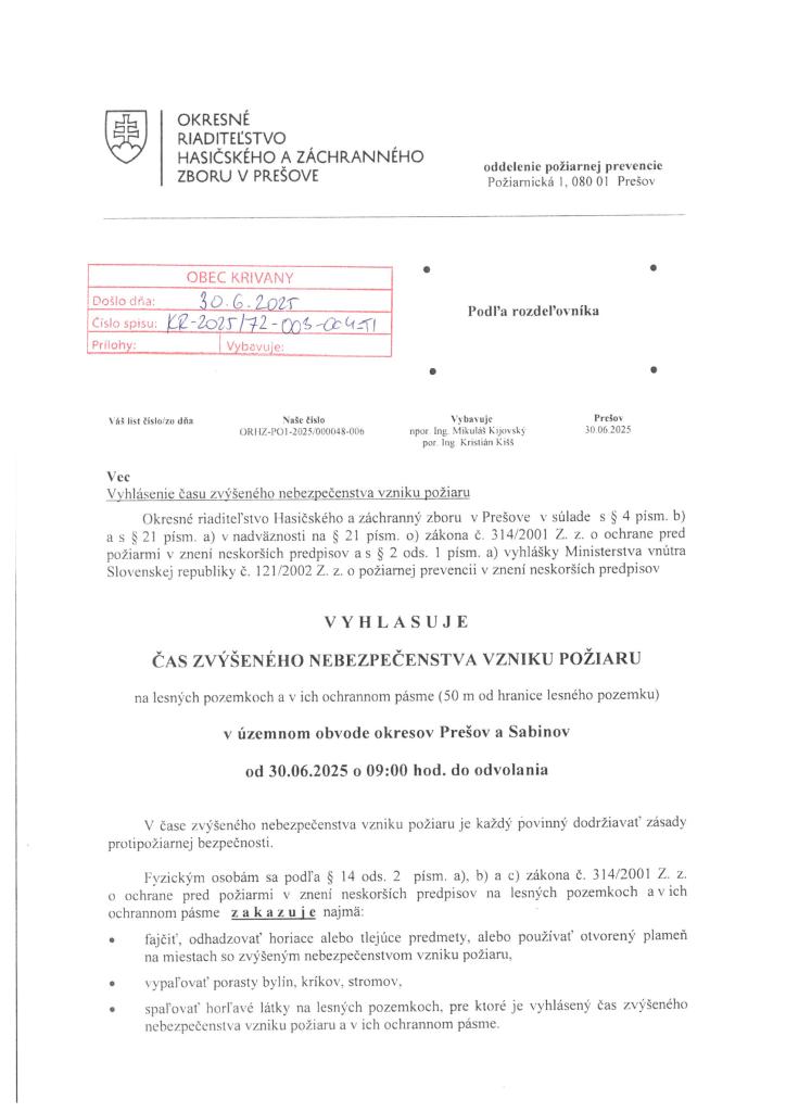 Vyhlásenie času zvýšeného nebezpečenstva vzniku požiaru