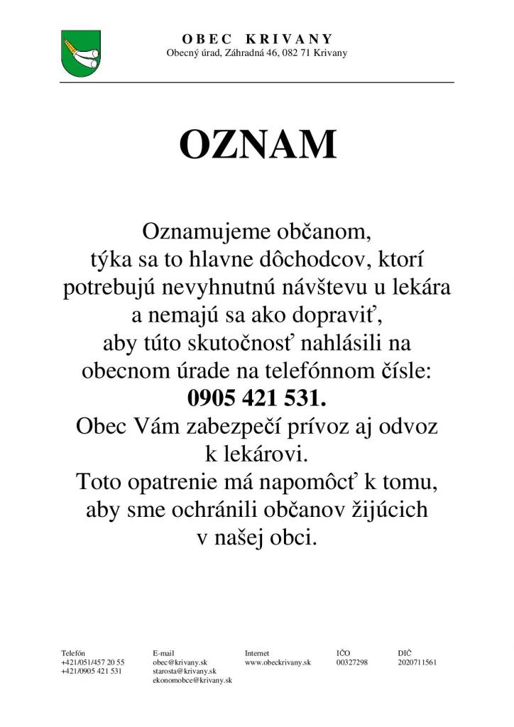 Obec zabezpečí prívoz aj odvoz k lekárovi.